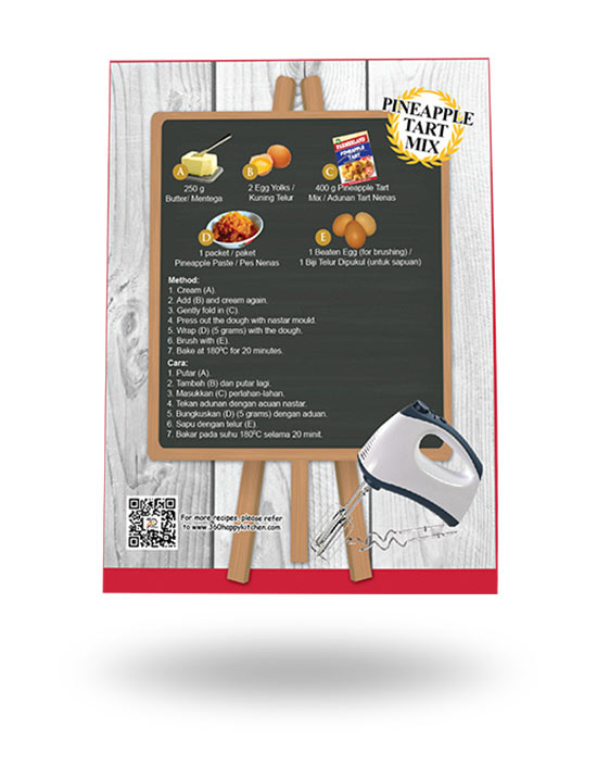Pineapple Tart Mix is a type of mixed flour. It is very convenient and you can refer to the recipe at the back of the packaging. Bake some fresh and healthy pineapple tart now!
