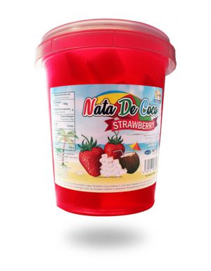 Nata de coco is a chewy, translucent, jelly-like food produced by the fermentation of coconut water, which gels through the production of microbial cellulose by Acetobacter xylinum. It is best to cold it in refrigerator before serve.